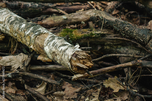 © taiga, Obraz premium pine firewood lying in a handful in the forest