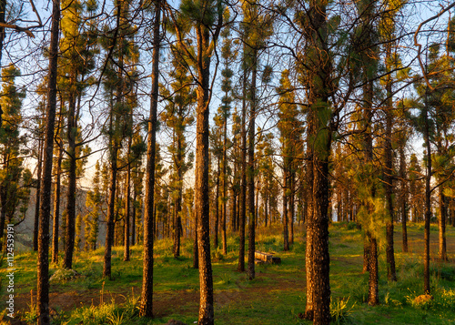 Fototapeta premium Pine forest at sunset in Gran Canaria