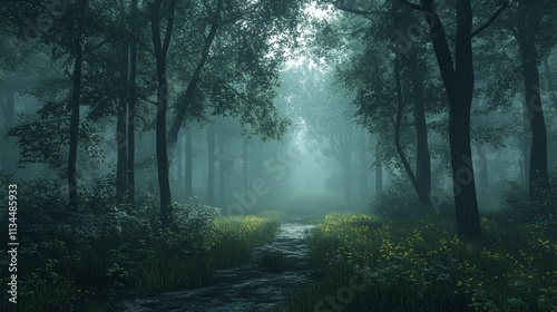 © alirazaartworks, Fototapeta premium Pine forest darkness cloudy and rainstorm nature environment season