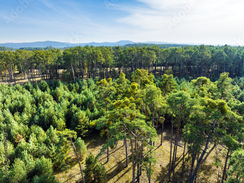 Fototapeta premium Pine forest from drone, aerial nature view