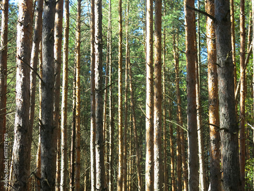 © Lumatis, Fototapeta premium Pine forest in early autumn in Lopatinsky quarries, Moscow region