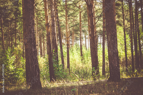 © AnnaPa, Obraz premium Pine Forest in the Morning Filtered