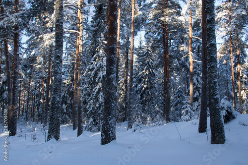 Fototapeta premium pine forest in the snowy cold winter.