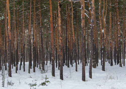 Naklejka premium pine forest in the winter forest