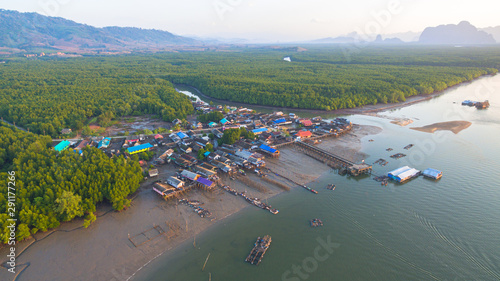 © Narong Niemhom, Obraz premium pine forest in wetland have a small fishing village inside
