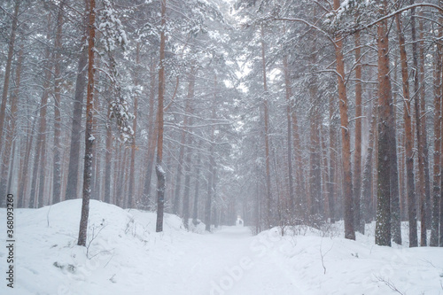 Fototapeta premium pine forest it snows in winter