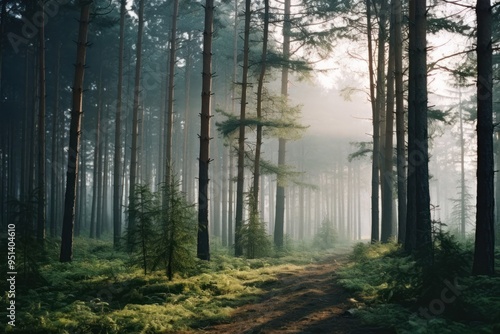 Fototapeta premium Pine forest landscape outdoors woodland.