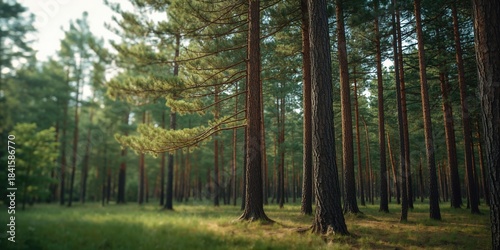 Fototapeta premium Pine forest landscape sustainable land use, background for environmental...