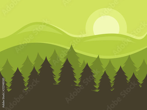 © yime, Obraz premium Pine forest landscape, vector illustration.