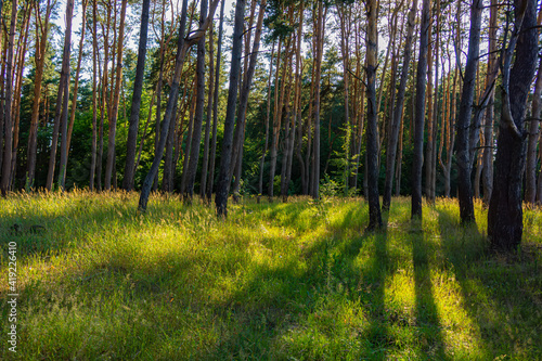 © APHOTOSTUDIO, Obraz premium pine forest on a sunny evening.