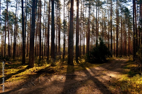 © SHARKY PHOTOGRAPHY, Obraz premium Pine forest on a sunny spring day