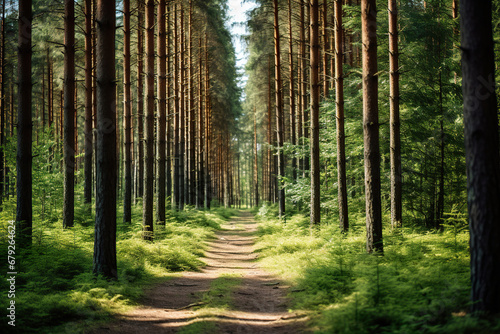© Shades3d, Obraz premium Pine Forest Path. Generative Ai