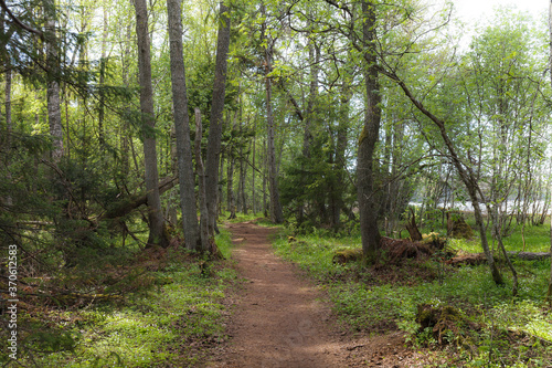 © Mykola Iegorov, Obraz premium Pine forest summer day magical view, orton effect