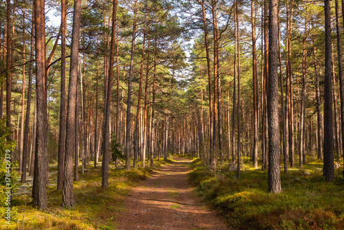 Obraz premium Pine forest trail in Lahemaa National Park, Estonia.