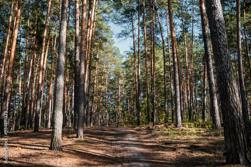 © bbgreg, Obraz premium Pine forest view, summer landscape, forest trail.