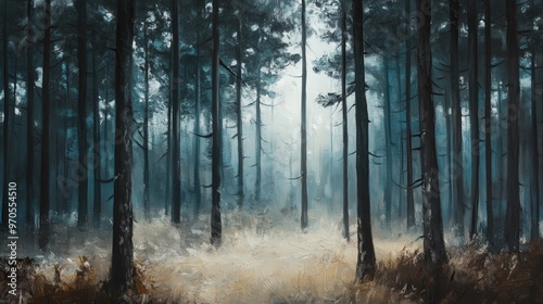 © wicha, Obraz premium pine forest with a gentle breeze rustling the needles.