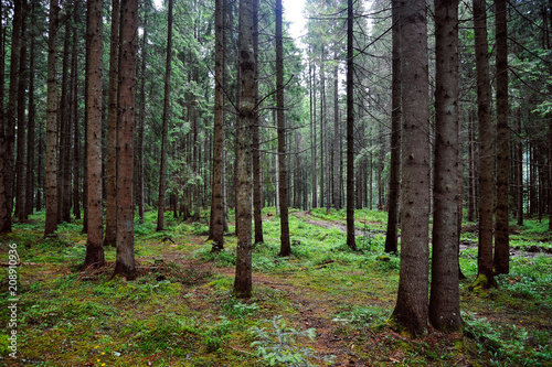 © viktor, Obraz premium pine forest with moss and large tree trunks