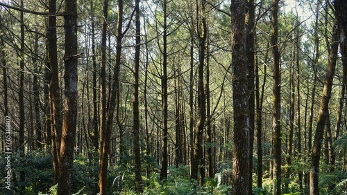 Fototapeta premium Pine Forest with Sunlight for Nature and Landscape Photography