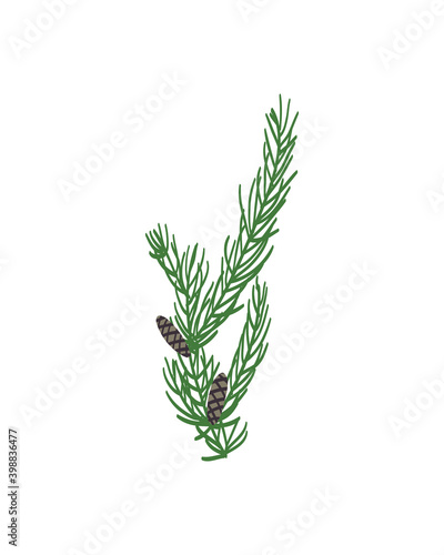 Naklejka premium Pine leaves are drawn by hand in an isolated background. Vector elements for christmas and winter design decorations
