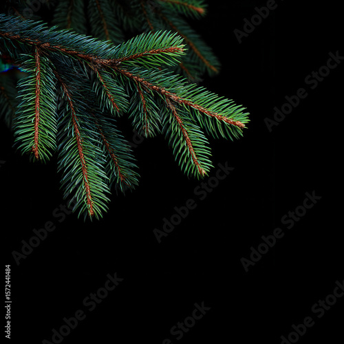 © Светлана Гуркова, Obraz premium Pine needles close-up in dark setting