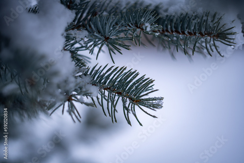 Obraz premium Pine needles in winter - macro