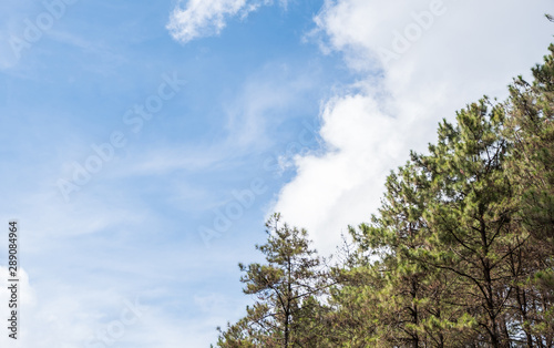 Obraz premium Pine row under the cloudy sky.