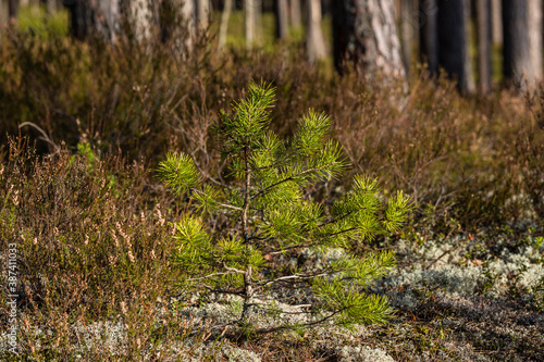 Fototapeta premium pine three and old withered trees in forest wit reflections