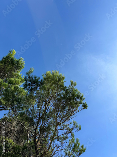 Obraz premium Pine tree against blue sky.