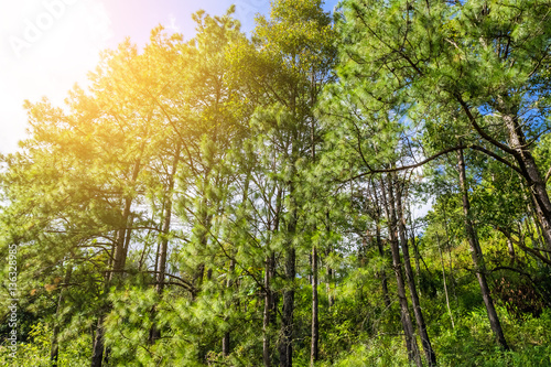 © tocamarine, Fototapeta premium Pine tree beside the road on the mountain