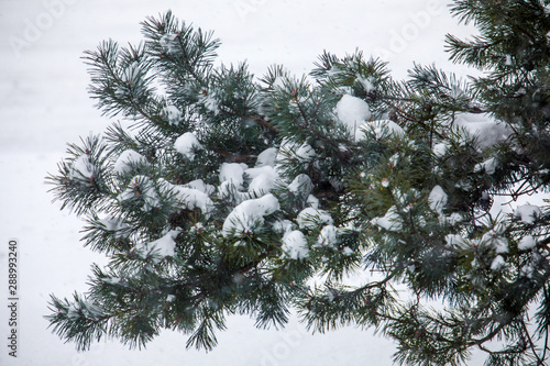 Obraz premium Pine Tree Branches Covered in Snow