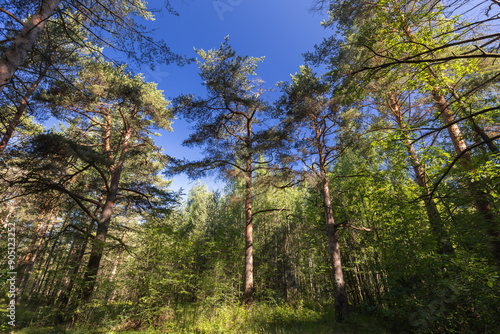 © evannovostro, Fototapeta premium Pine tree forest, natural background photo