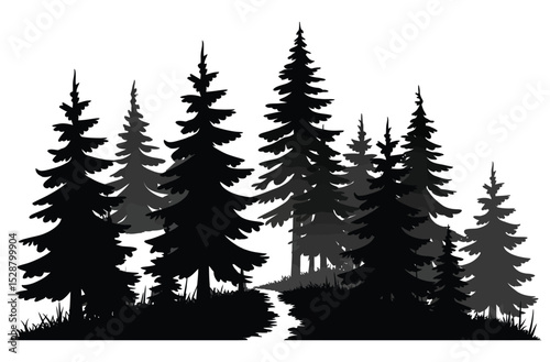© AYAT, Fototapeta premium Pine Tree Forest Silhouette Black Evergreen Woods Vector Illustration