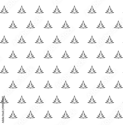 © Ekaterina, Naklejka premium pine tree graphic line art vector white background eps file seamless pattern