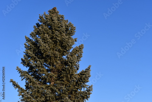 Obraz premium Pine tree, isolated, bold blue sky.