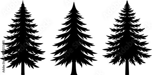 © Simonkhan, Naklejka premium Pine tree solid icon vector art, Vector of mountain tree icon silhouette design