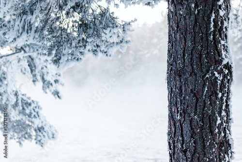 © Johanna H, Fototapeta premium Pine tree stem with snow