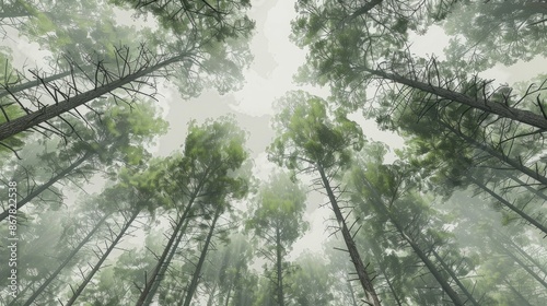 Naklejka premium Pine tree tops in the woodland