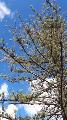 Obraz premium Pine Tree with Bright Blue Sky Background