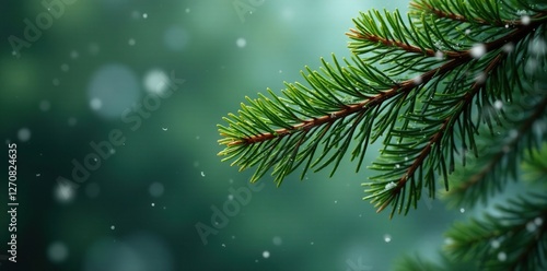 © Sarayuth, Obraz premium Pine tree with full lush greenery and a subtle snowfall effect, snowflake