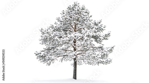 © SKY, Obraz premium pine tree with snow-covered branches isolated on white background