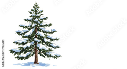 © Rodrigo N, Fototapeta premium pine tree with snow illustration on white background
