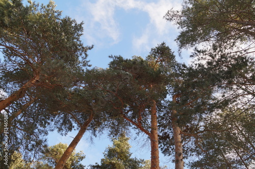 © irbismarengo, Fototapeta premium pine trees against a blue sky