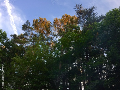 © larue68, Obraz premium Pine trees at dusk