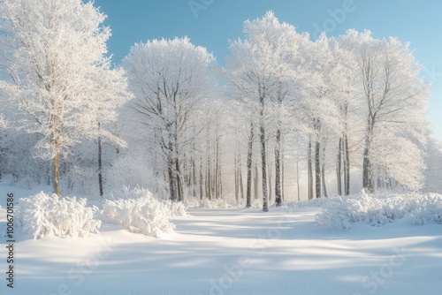© Michael, Fototapeta premium Pine trees covered in snow creating a magical winter scene