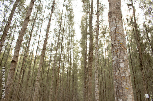 © mckaphoto, Fototapeta premium pine trees forest in autumn season