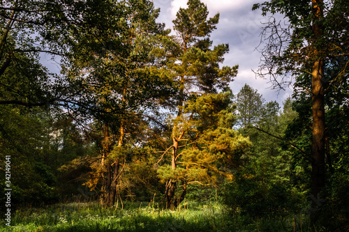 © Majere, Obraz premium Pine trees in a forest clearing in the sun 2