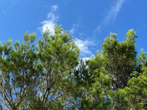 © OLENA LIALINA, Fototapeta premium Pine trees in coniferous forest