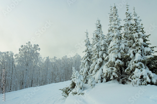 Obraz premium Pine trees in snow, Ural, Russia