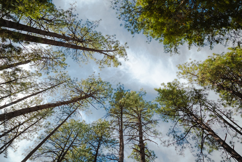 Obraz premium Pine trees in the woods, pine trees canopy