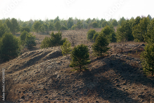 © pushann, Fototapeta premium Pine trees on the mountain on a sunny spring day.